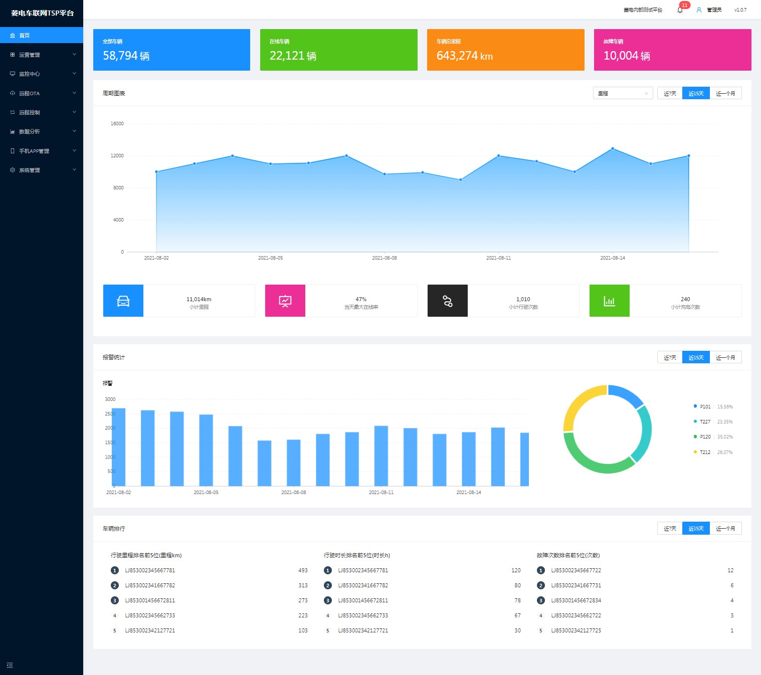 符合GB/T 32960通信標準的平臺框架基于Redis和Mango DB的大數(shù)據(jù)架構數(shù)據(jù)庫靈活的前臺顯示頁面定制化功能模塊...
